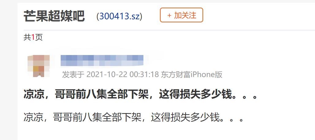 10月21日晚,李云迪事件一出,大批网友到芒果超媒的股吧下留言。网友们发现,21日晚,芒果TV《披荆斩棘的哥哥》前8期节目全部下架,1-8期已搜索不到,而这也不是剪辑师第一次要加班加点了。他们心疼芒果TV的剪辑师,“哥哥们有没有披荆斩棘不好说。芒果TV剪辑师们,这一路,是真的披荆斩棘了。”“重新剪辑,不良艺人惹的祸!”