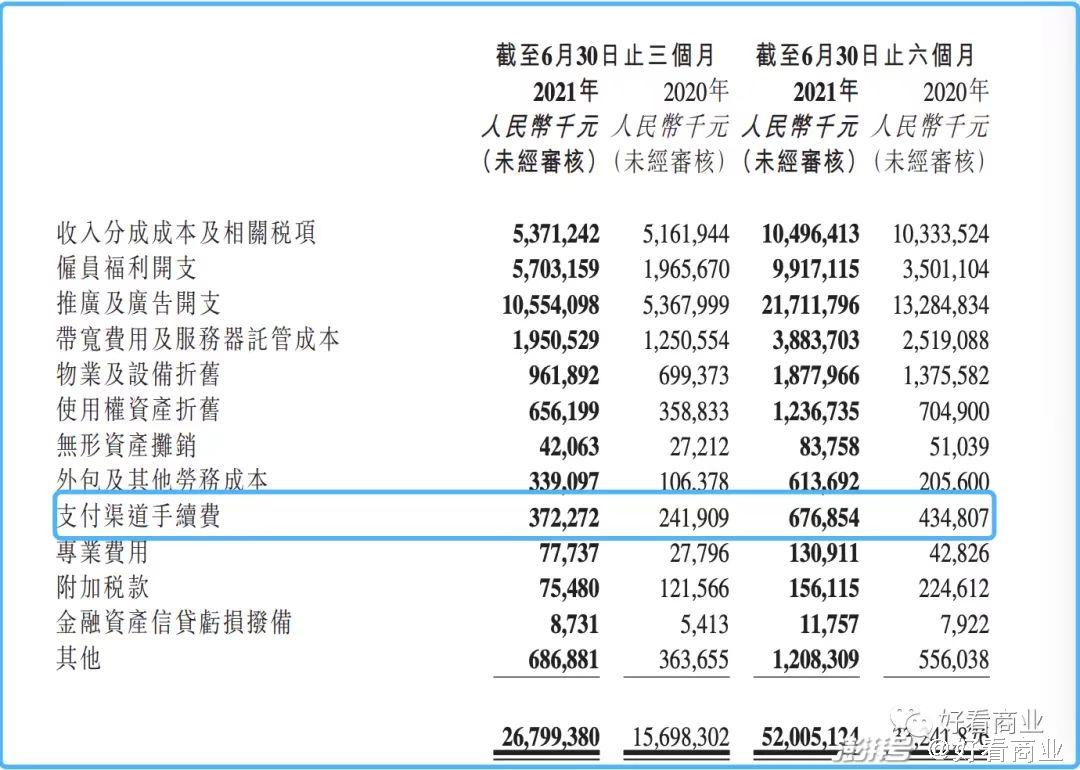 通过快手的财报同样一窥支付手续费有多高。2021年上半年,快手营收362亿元,同比增长42.8%;同期,快手的支付渠道手续费约达6.8亿元,去年同期为4.3亿元,同比增幅58%。