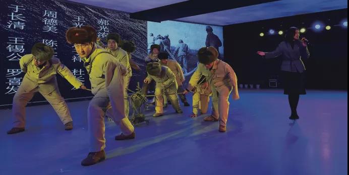 龙江“四大精神”情景主题教室,教学方式主要是“演”。教室把舞台当讲台,将学员变演员,采用情景朗读、访谈教学、舞台情景再现等方式,开发“固定剧本 + 流动演员”的教学新模式。目前,已开发了《激情北大荒》《巾帼抗联》《我要翻山越岭去见毛主席》等情景朗读课程,《八女投江》《赵一曼》等舞台剧目课程,《北大荒很了不起》现场访谈课程,有效提升了学员党性教育课堂参与度,推进学员将总书记关于龙江“四大精神”的重要论述内化于心,外化于行。