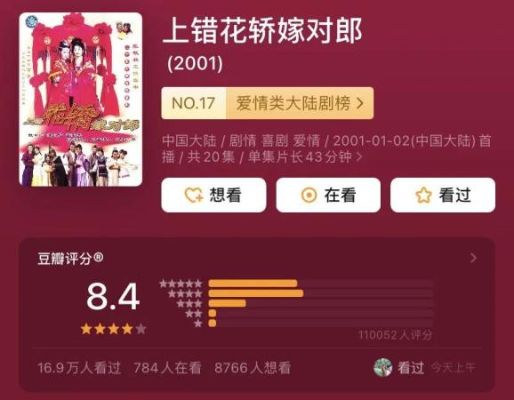 最明显的例子,任何一个剧种的天花板翻拍完都翻进了水沟。古装剧天花板《上错花轿嫁对郎》翻拍为《花好月又圆》。