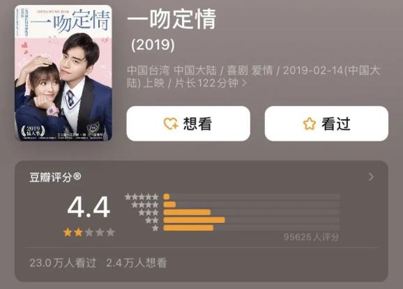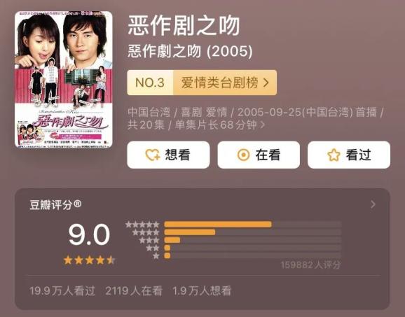 偶像剧天花板《恶作剧之吻》翻拍为《一吻定情》。林允的瞪眼杀让评分从9.0骤降到4.4。
