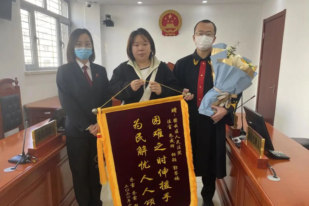 在对齐女士的付款记录等案件事实进行多次调查、查阅相关案例后,我们对双方争议的法律问题进行了准确的认定和详细的释明。在收到退还购房款的判决后,齐女士激动的送来锦旗和鲜花,并向我讲述了自己艰难的维权经历,特地送来锦旗和鲜花表示感谢,这一过程我深深感受到,让人民群众在每一个司法案件中感受到公平正义的意义所在。