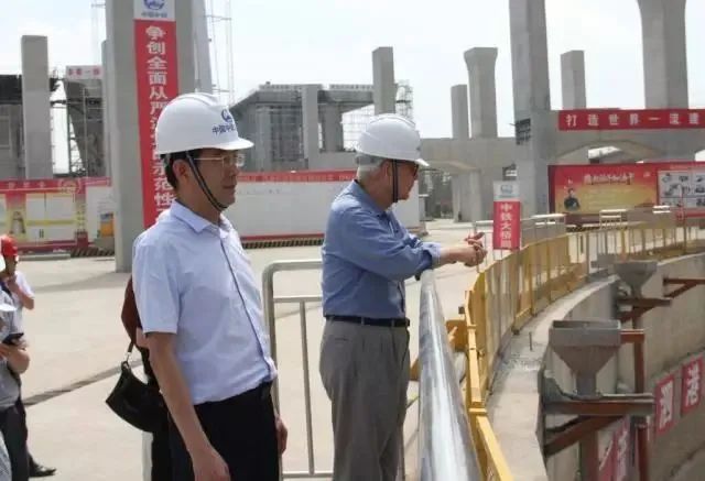 邓文中在施工现场杨浦大桥由上海市政工程设计院、上海城建设计院、同济大学建筑设计研究院、上海城建学院设计所、上海民用建筑设计院五个单位负责总图、主桥、引桥等全部项目的设计,由有建造南浦大桥丰富经验的以朱志豪为总指挥的黄浦江大桥工程建设指挥部承建。