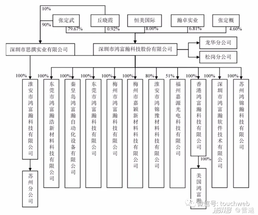 鸿富瀚实际控制人为张定武、丘晓霞夫妇,分别直接持有公司79.67%、0.92%的股份,合计持有公司80.59%的股份。