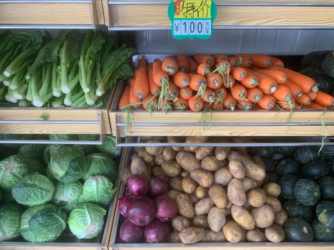 记者在该平价超市看到,大白菜、土豆、丝瓜、萝卜等蔬菜整齐地摆放在货架上,在货架上的价格标贴上,明码标写当天菜价,且蔬菜价格普遍比当地农贸市场的蔬菜价格优惠。价美质优、绿色新鲜的时令蔬菜吸引了众多周边居民前来选购。