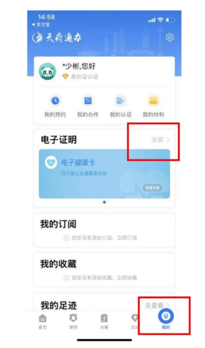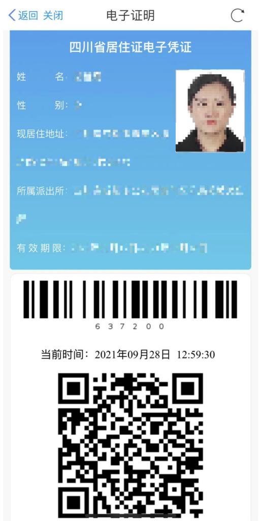 居民可使用“天府通办”移动端通过实名、实人认证后申领和“亮证”,业务人员根据业务场景对电子凭证进行扫码核验。