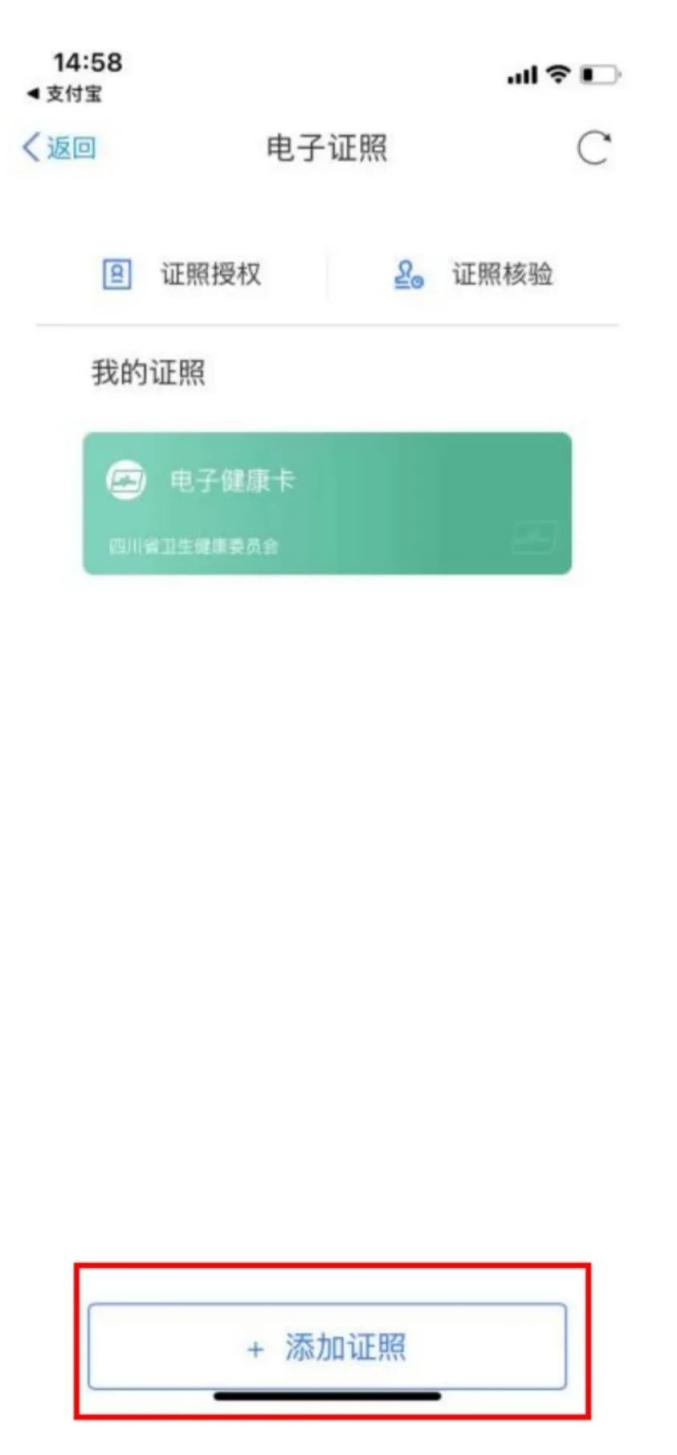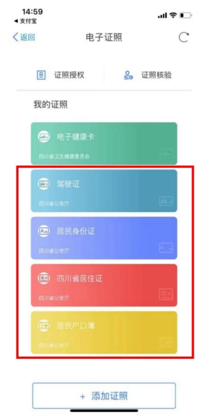 添加证照后返回“我的证照”,选择相应证照进行申领。