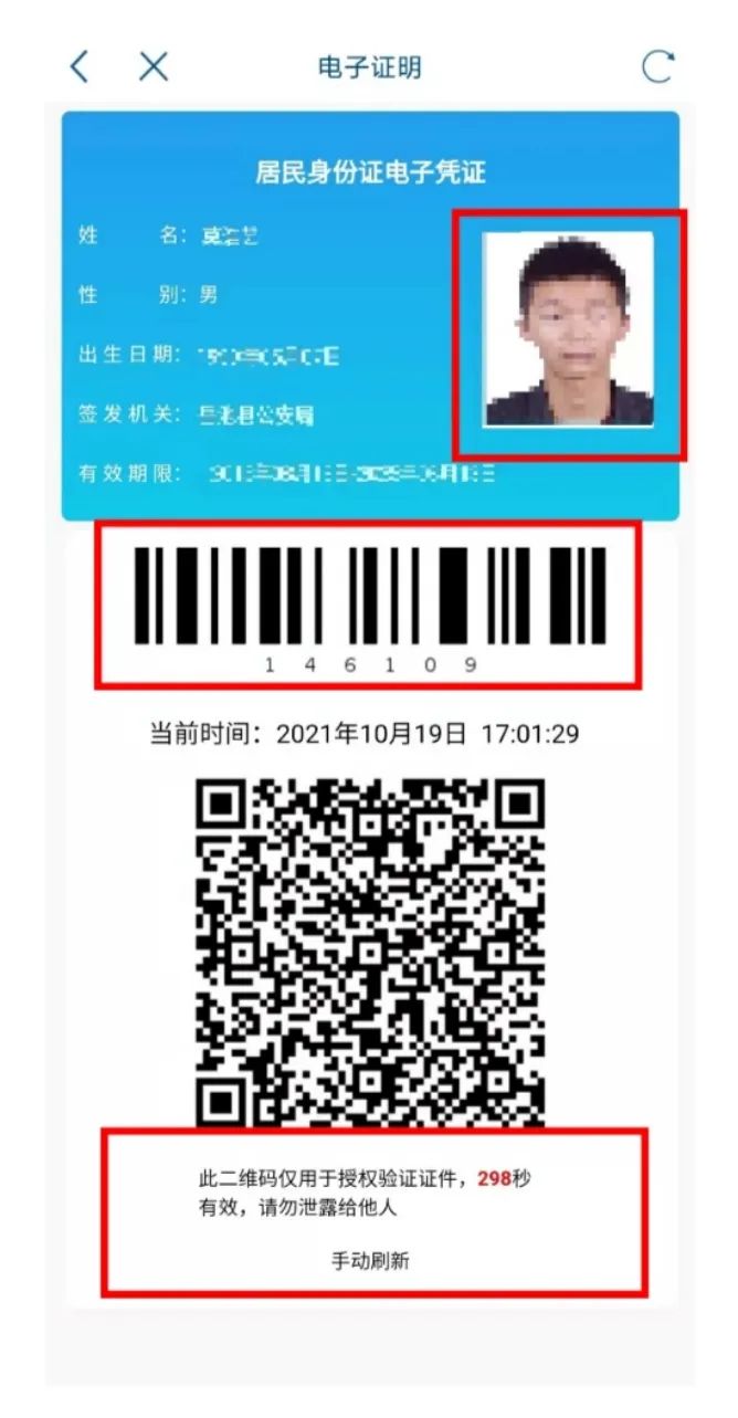 不用担心信息外泄。电子凭证与手机硬件形成绑定,别人无法伪造、无法使用截图(截图无300秒时间倒计时),有效保障申领人的信息安全。