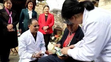 费县人民医院呼吸科主任 高士学:这些老英雄大都处于高龄,存在视力、听力以及心肺功能异常。通过这次活动,我们发现了很多老英雄都有白内障、视力低下、听力异常以及慢阻肺、冠心病等慢性疾病。回去以后,我们要做详细的研究,制定合理的治疗方案,定期随访,为老英雄的身体健康保驾护航。