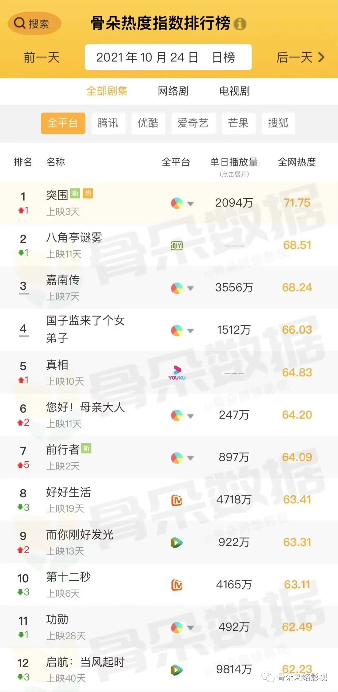 经过四天发酵,承接了《人民的名义》的高期待电视剧《突围》(原名《人民的财产》),终于在昨天以71.75的单日热度排在骨朵剧集榜单首位。《突围》以新中国第一批国有企业中福公司的党风廉政改革为切入点,勾勒出国企突破经营困境和以京州为代表的资源型城市转型的过程。