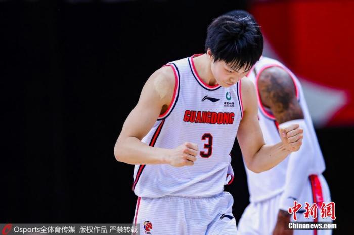 资料图:2020-2021赛季CBA总决赛于5月1日晚落下帷幕。最终广东男篮经过加时以110:103击败辽宁男篮,蝉联CBA总冠军,这也是其队史第十一冠。图为广东队在比赛中。图片来源:Osports全体育图片社