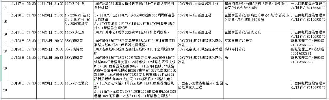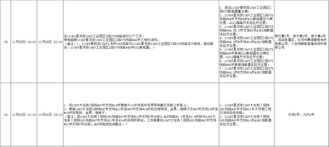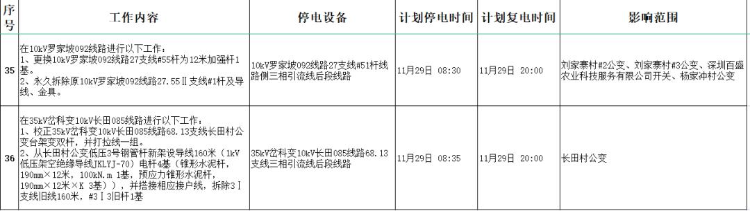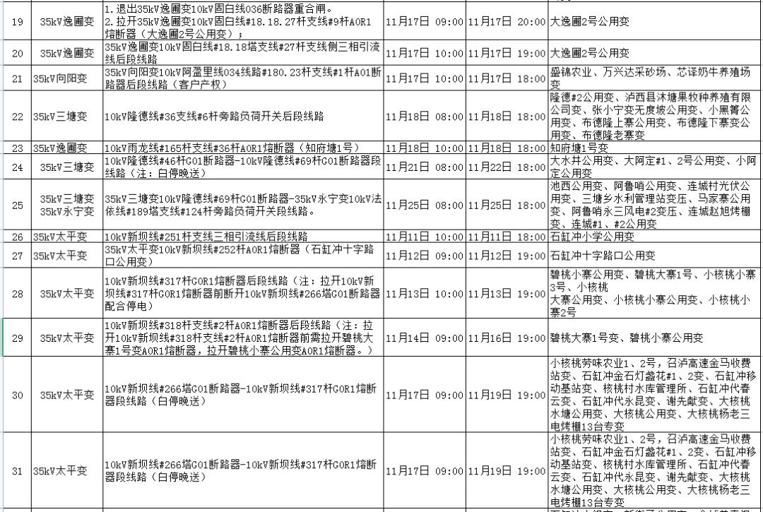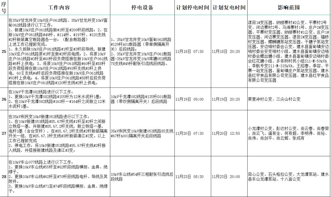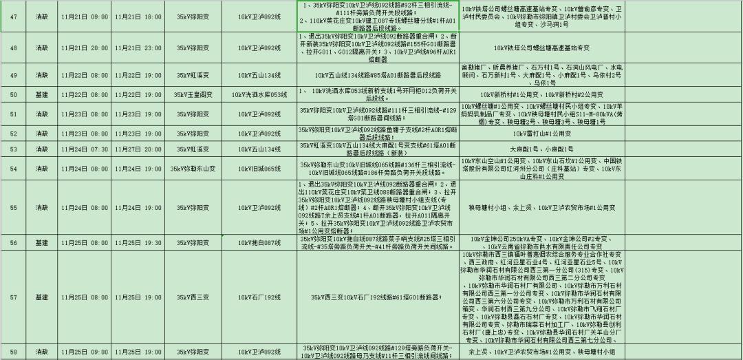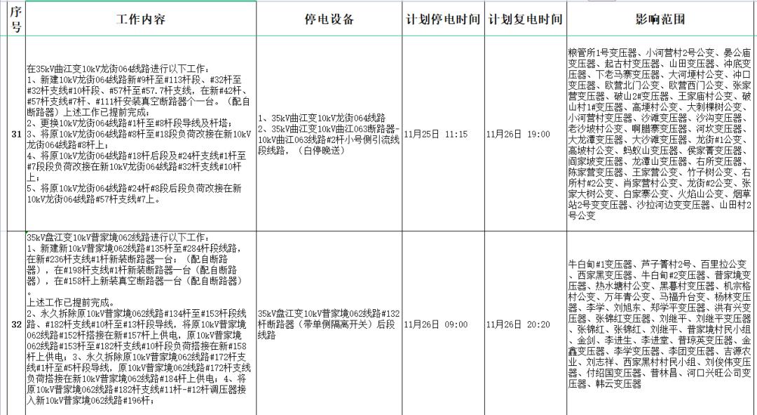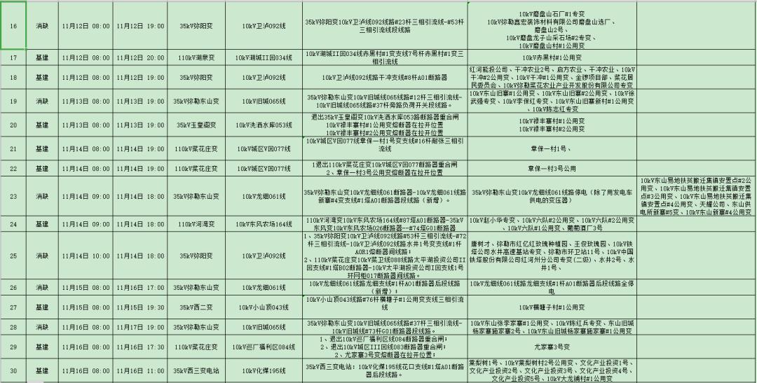 因电网检修需对以下线路进行停电,现将2021年11月计划停电时间及停电范围公告如下: