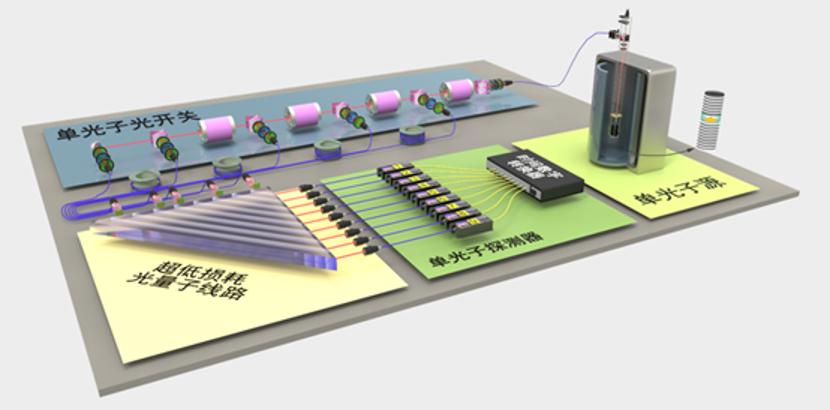 量子计算机本身就是一套“系统”,独立的光学组件提供了硬件,复杂的光路结构则决定了它的“算法”。例如,以光子作为量子比特的量子计算机,需要能够产生光子的单光子源,能够改变光子状态、完成“算法”的特定光路结构,还需要单光子探测器对光子的最终状态进行观测。
