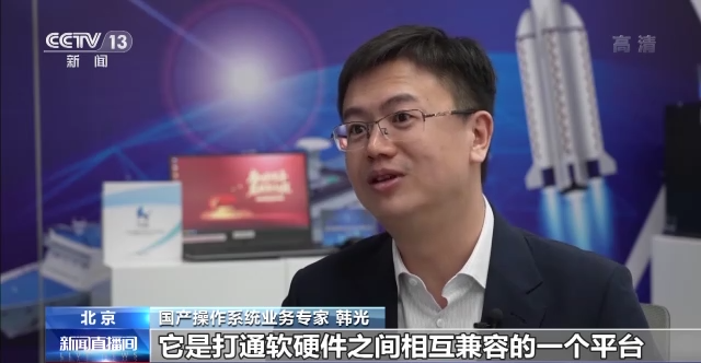国产操作系统业务专家 韩光:它是打通软硬件之间相互兼容的一个平台,就是因为在硬件这和软件之间有了一个操作系统,所以我们才能用这些程序,如果没有这个操作系统的话,其实这些程序是没有办法直接跑在硬件设备上的,所以你是没法用的。