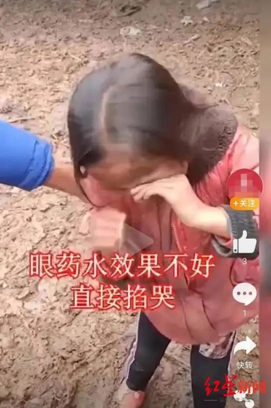 “韩文团队”采用滴眼药水、掐孩子等手段,人为制造女孩流泪场面今年3月,“韩文团队”以扶贫捐助、帮扶困难群众为名,从事网络直播带货。后经查,抖音号“韩文团队”由赵某某策划、指导“摆拍”,发布不实视频博眼球、吸粉,从事网络直播带货牟利。