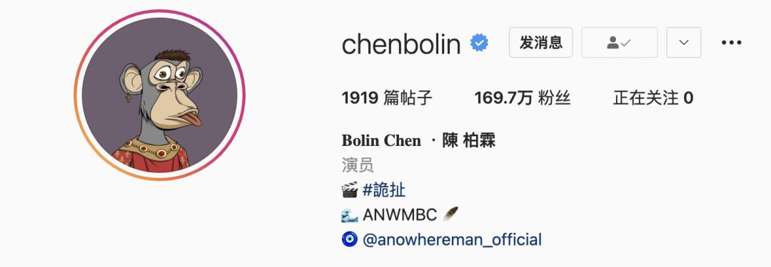 当时因为他换了个头像,也是引起了不少哗然,毕竟这个猿猴头像居然是花费18万美金拍卖所得,而陈柏霖也拥有了该系列的一枚!陈柏霖