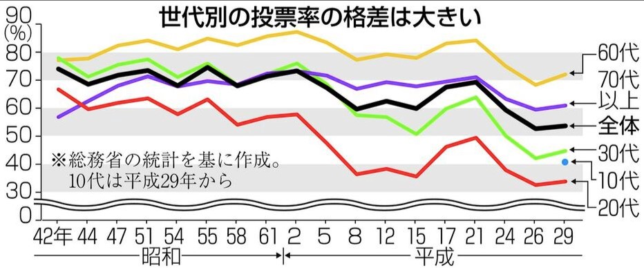 选举投票率不断走低的情况确实在各个年龄层中已出现,针对这一问题的成因,《西日本新闻》报道指出,民众对政治的“不关心”是原因之一。