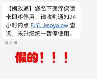 10月28日,有市民向智慧海都APP反映,他收到一条闽政通发来的短信,声称自己的医保卡即将停用,需要在24小时内点击链接进行升级。