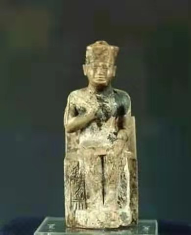 如果需要省工省力,地坑深度不一定与金字塔高度完全一样,可以略小于金字塔的高度,这样挖沙的工程量就能进一步减小。地坑的深度小于金字塔的高度会导致部分塔顶露出地平面,这也符合墓穴通常会留下标识便于辨别的风俗习惯。露出地平面的高度一般不会超过10米,这部分体积占整个金子塔体积的比例很小,向上运输石块的工程相对容易,古埃及工人完成能够做到。当然,这种情况出现的概率较低。修建金字塔过程中把石棺预埋在塔中,石棺内不会放置真正的尸体而是法老的衣冠(如胡夫还健在),真正的尸体埋葬于埃及卢克索的帝王谷等其它地方。同时,在回填沙土时也要留下通往墓室的暗道,这种方法在中国也很流行。根据人类起源于喜马拉雅的观点(Li Houqiang等,2021),埃及文明可能来源于中国,从胡夫(Khufu)塑像的衣装和神态可见东方元素很多特别是中国特征非常明显,如图6。中国自古以来都以土葬为主,特别是统治者都修建大型陵墓于地下。