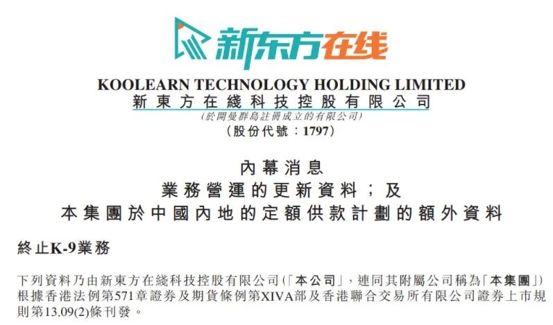 新东方在线也在这次的公告中额外提到:鉴于K12业务在财年产生的亏损,本次裁撤K9业务,预计盈利上将获得积极影响。