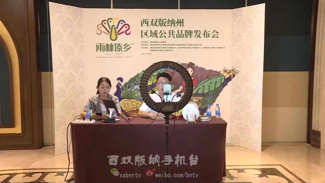 发布会现场还设置了产品直播间,通过直播带货的新方式,主播现场向全国的消费者推介了优质的西双版纳特色农产品,带动产品的宣传和销售。