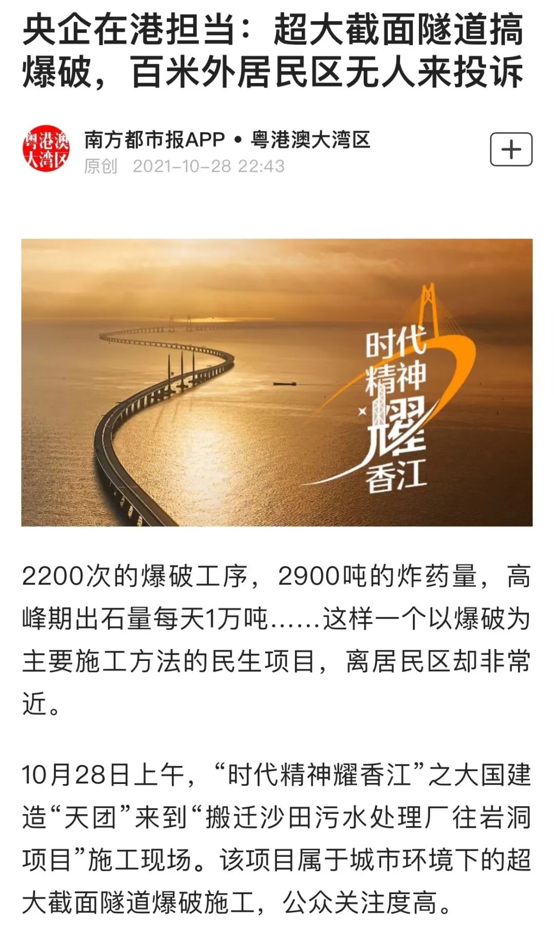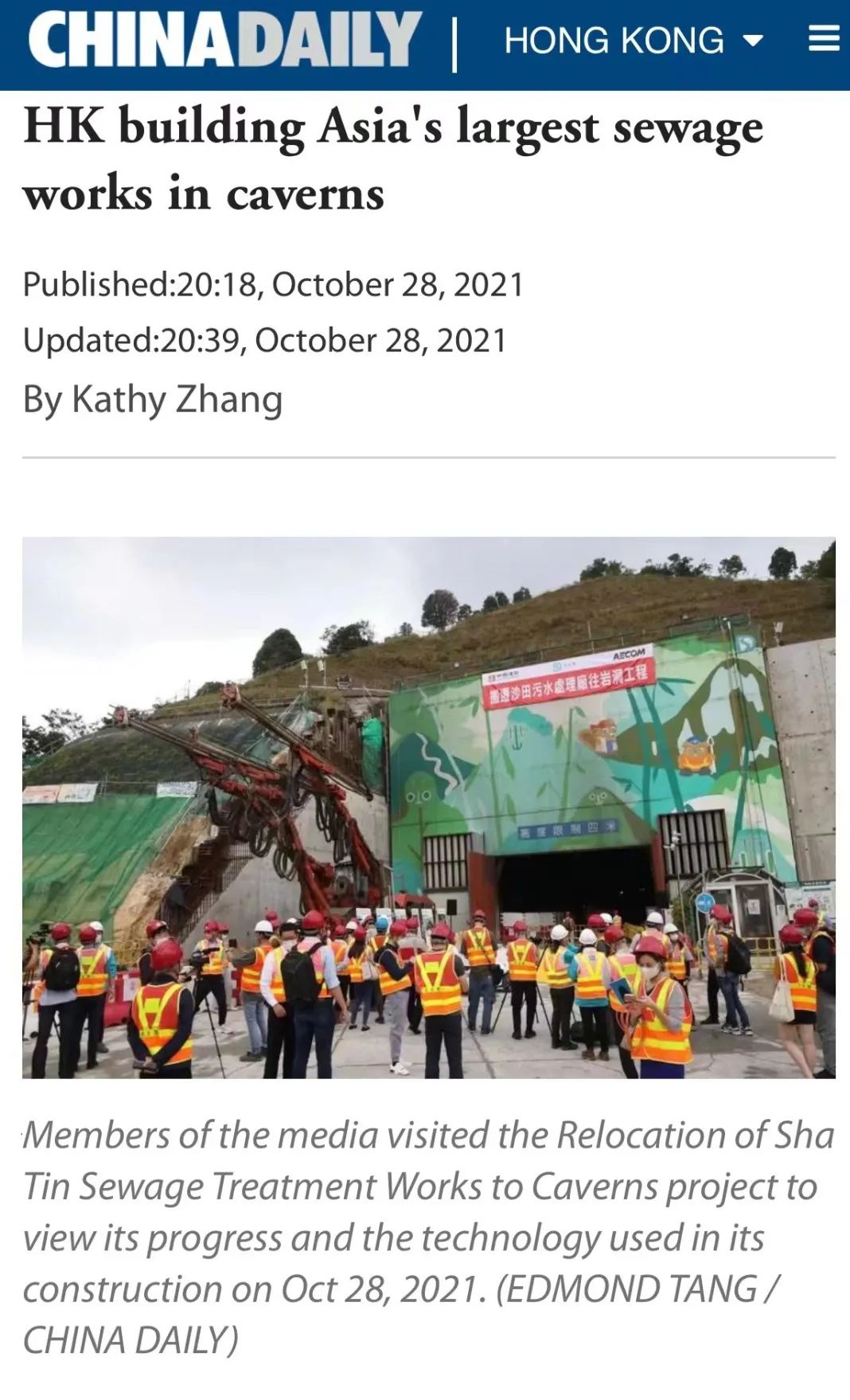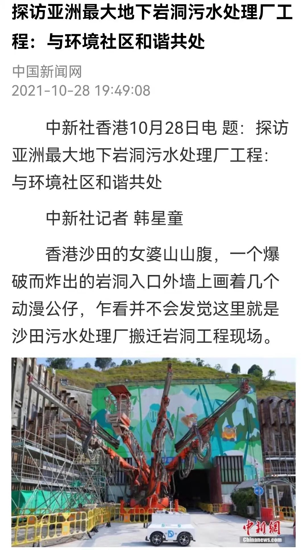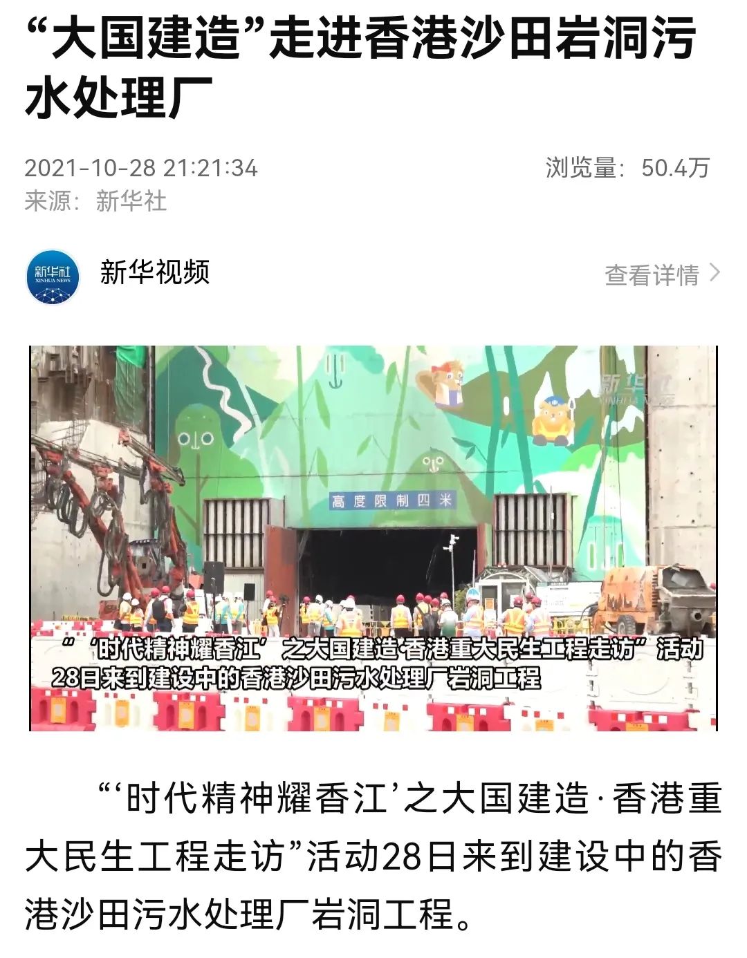 10月28日,“时代精神耀香江”之大国建造香港重大民生工程走访活动,暨中国建筑“建证幸福(WITNESS HAPPINESS)”开放日第102场,走进中海集团承建的搬迁沙田污水处理厂往岩洞工程。主流媒体及香港当地媒体组成的采访团来到沙田梅子林路旁的岩洞工程地盘,探访这个亚洲最大地下岩洞工程。