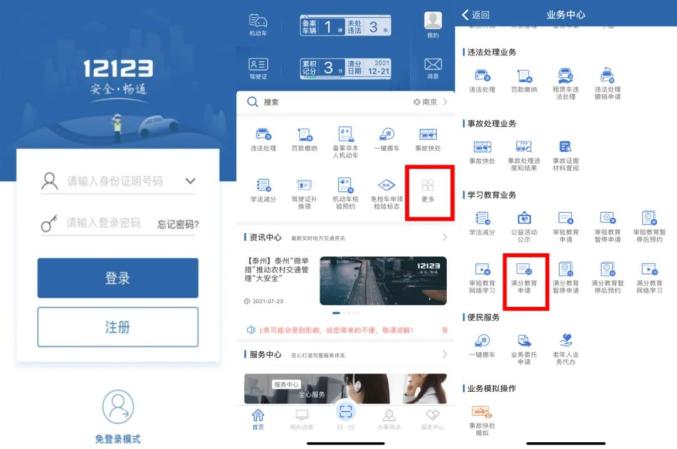 下载“交管12123”手机App,注册登录后,首页选择“更多”后,在业务中心选择【满分教育申请】,填写相关资料进行申请。