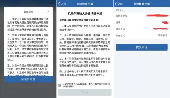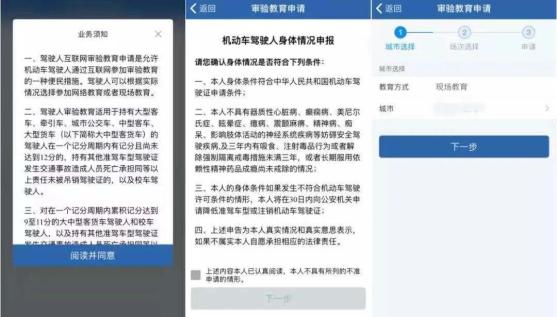 网络教育方式对于一个记分周期内记分1-8分的驾驶人,还可通过交管12123APP在线申请网络教育方式。驾驶人仔细阅读审验教育申请业务须知并完成申请信息确认后,即可完成审验网络教育申请。