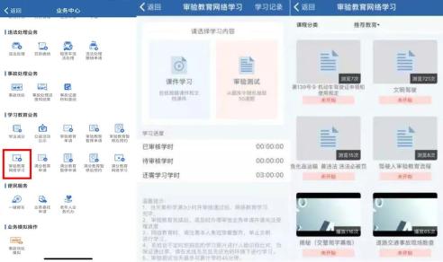 网络学习对于选择了“网络教育”方式的驾驶人,可以点击【审验教育网络学习】进入审验教育网络学习流程。审验网络学习形式包括课件学习和审验测试,课件学习包括视频课件和文档课件,其中审验测试每天学时最多计入45分钟。学习过程中系统不定时抓拍学习照片。审验网络教育每天不少于1小时,连续3天内累计学满三小时,通过审核后,视为有效学时。