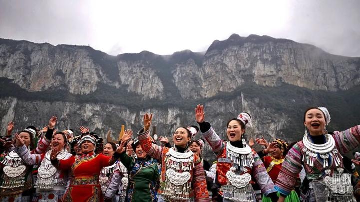 △今年2月,习近平来到贵州化屋村考察,当地村民用欢快的苗家歌舞迎接总书记。(总台央视记者王哈男拍摄)总书记还提出,要正确把握中华文化和各民族文化的关系。