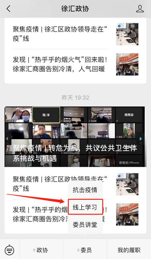 徐汇政协线上学习■ 线上学习可通过“徐汇政协”官方微信公众号首页下方菜单栏“委员-线上学习”栏目进入。