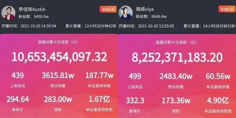 闹了半天,薇娅、李佳琦都是天猫的自家人。在天猫上买流量,还能干活,那为什么不多给资源呢?于是我们看到10月20日晚上的直播间,李佳琦、薇娅直播间的人数都超过了2亿。