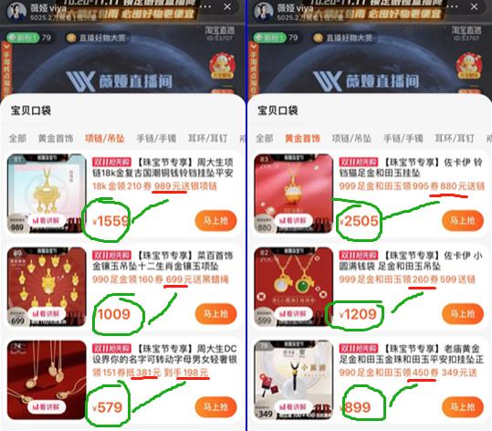 ▲薇娅直播间的黄金、玉石折扣力度很大以前双十一自己安安静静拿着手机购物,见到优惠还有几分冷静。可一旦有个人隔着屏幕对你大喊:“很优惠了,买它”的时候,你很难不冲动把它添进购物车。