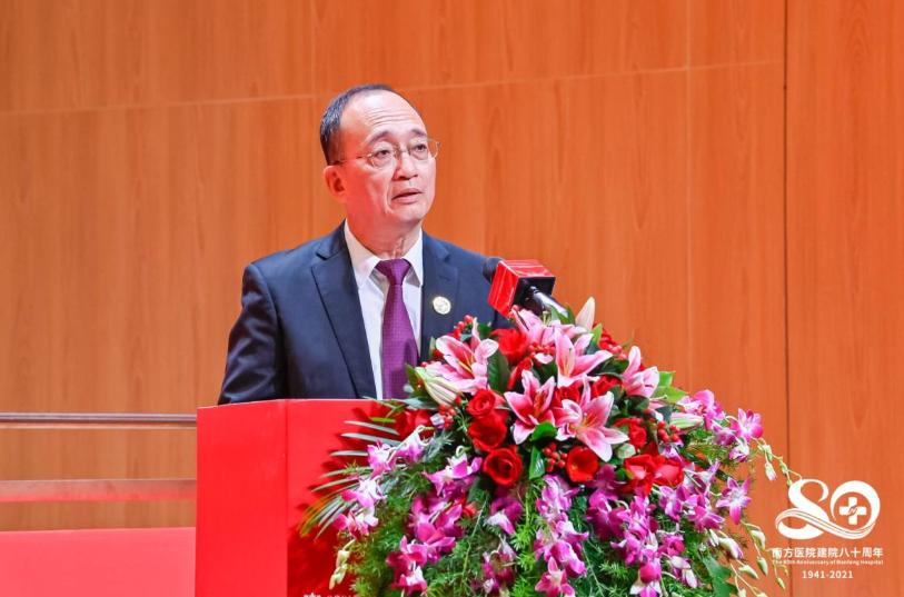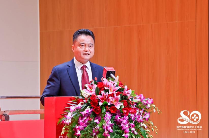 广东省卫生健康委党组书记、主任朱宏肯定了南方医院始终秉承军队的优良传统,在推动医院高水平建设,培育高素质队伍人才,加强公立医院党建等方面,实现了跨越式发展。他希望南方医院立足新起点,展望新征程,强壮实力,趁势而上,努力建设国内一流、国际有影响力的研究型医院,努力打造更多的一流中心、一流专科、一流团队。同时弘扬创新精神,修医德、行医术,进一步完善改善医疗服务,为巩固疫情防控的重大成果、守护人民生命健康做出更大的贡献。