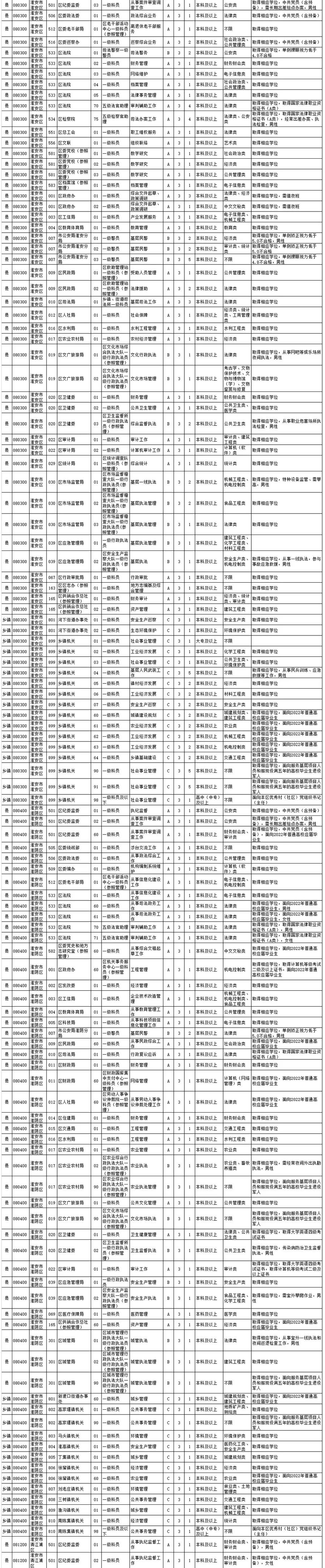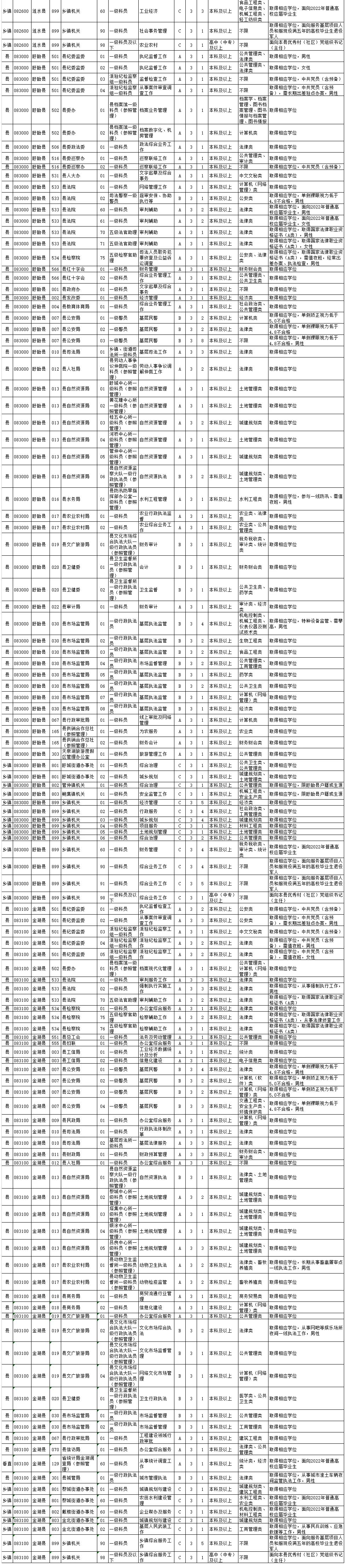 2.18周岁以上、35周岁以下(1985年11月2日至2003年11月8日期间出生),普通高校硕士及以上学位2022年应届毕业研究生(非在职)、定向招录优秀村(社区)党组织书记(主任)职位的报考者年龄可放宽到40周岁(1980年11月2日以后出生)。公安机关人民警察及人民法院、人民检察院司法警察职位的报考者,按照《关于调整公安机关和监狱及劳动教养管理机关录用人民警察招考年龄的通知》要求执行,其中,报考公安机关人民警察和法院、检察院司法警察职位的报考者年龄一般不超过30周岁(1990年11月2日以后出生),普通高校硕士及以上学位2022年应届毕业研究生(非在职)的报考者一般不超过35周岁(1985年11月2日以后出生)。
