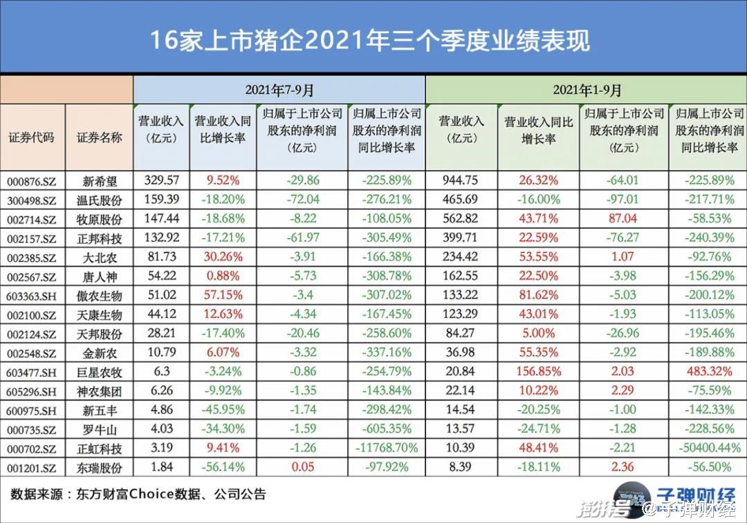 猪企的业绩,也在今年第三季度遭遇了冰点时刻。