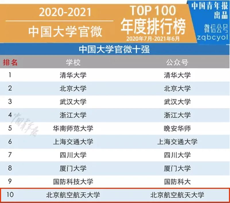2021年7月,北航获得2020-2021年度中国大学官微十强。其他官方新媒体平台同样硕果累累——