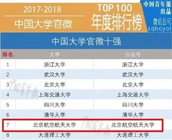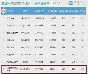 “清博指数”统计全国高校微信公众号100强2017年度榜单,北航位列十强。2018年