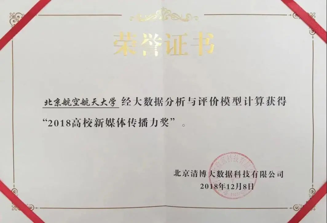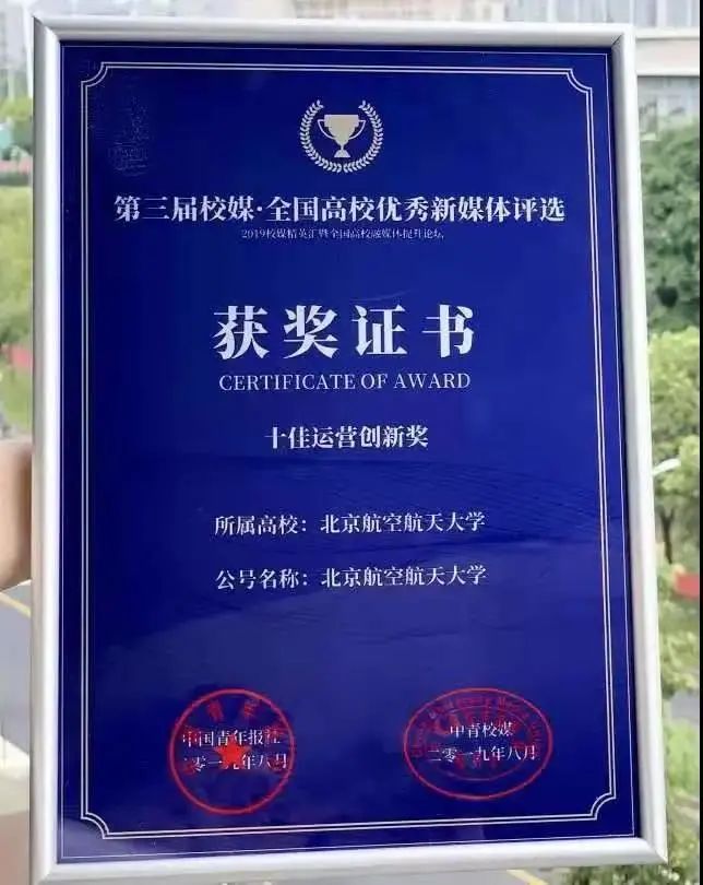 2019年,北航获评“2018-2019年度中国大学官微十强”、“十佳运营创新奖”。2020年