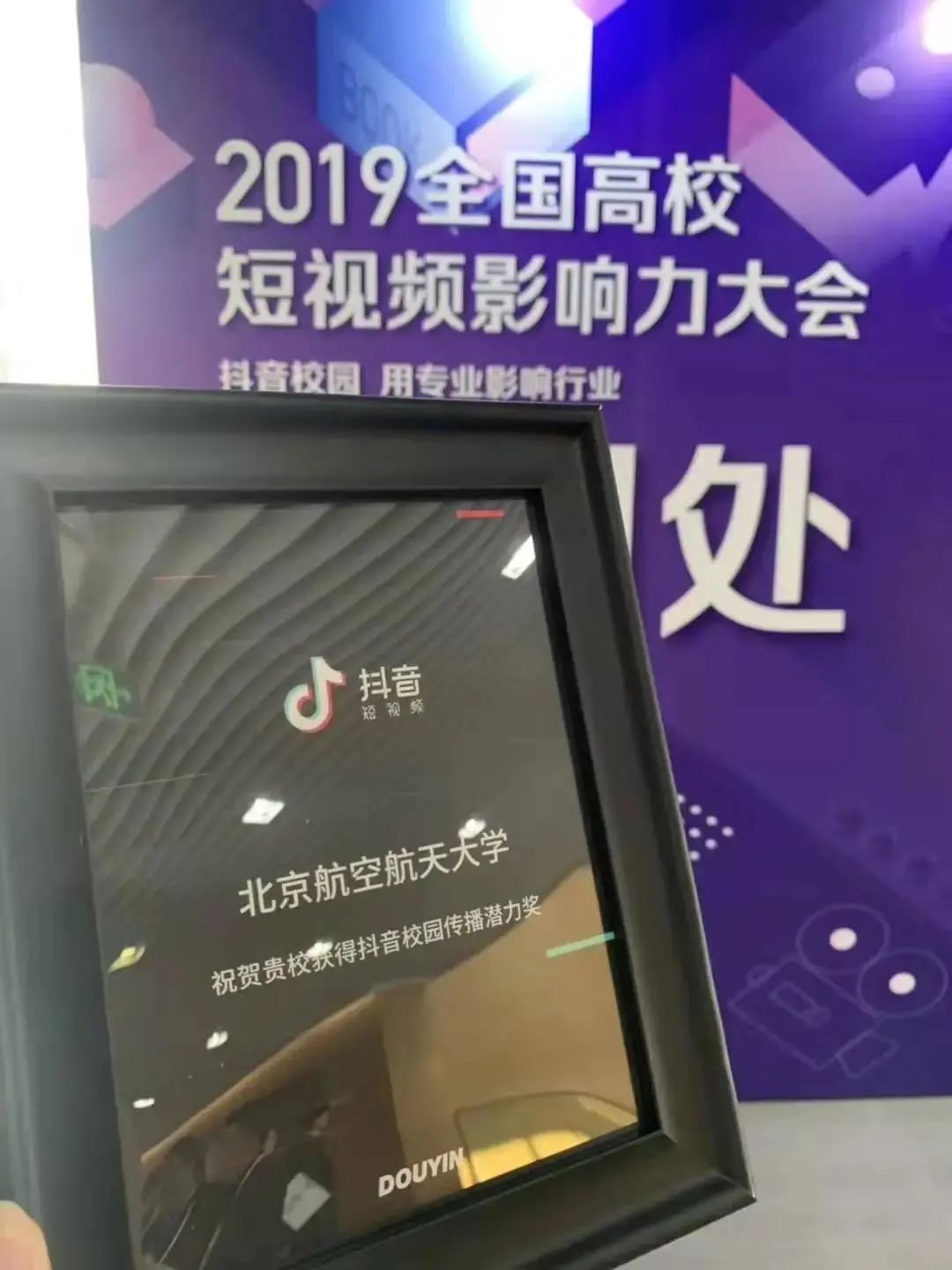 官方抖音号获抖音颁发的抖音校园传播潜力奖