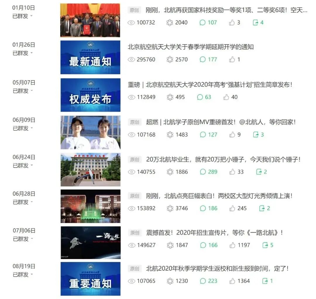 北航官微影响力稳居全国前十多次荣获全国高校月冠军、周冠军