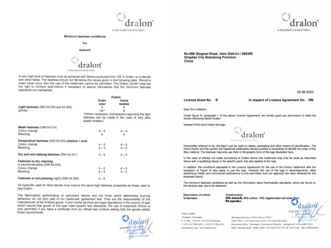 早在2012年,日舒就是德国dralon®X351型纤维在中国的唯一指定代理商,负责中国市场的推广工作。