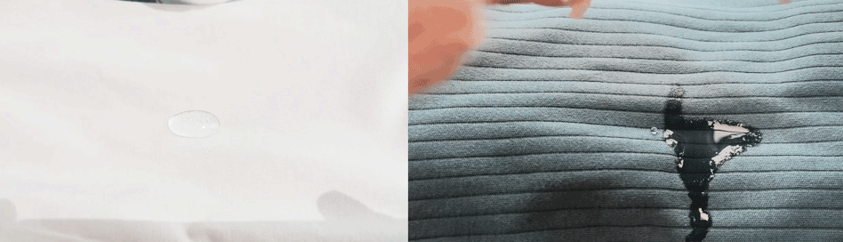 德绒纤维结构均匀致密,表面光滑,光泽优雅。工艺还用了服装里少有的60支高支高密工艺,成本更高,但能让面料更细腻柔软,丝滑到水珠都能在上面滚动。