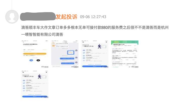 有这类经历的,不只是张兰一人。打开黑猫投诉,搜索“滴答顺风车”,相关投诉不少。
