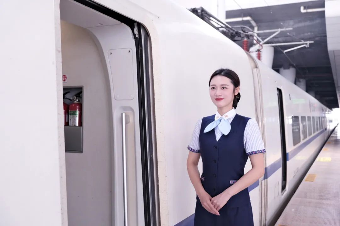 △照片拍摄于非作业列车值乘高铁的乘务员小姐姐