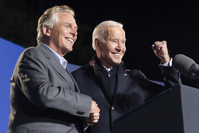 “弗吉尼亚振作起来,展现出你们当年对巴拉克(即美国前总统奥巴马)和我的支持!展现出你们对我和卡马拉(即美国副总统哈里斯)的支持!展现出对像特里·麦考利夫这样的经得起考验的领袖的支持!”2021年10月27日,即将启程访问欧洲的美国总统拜登特别安排时间给弗吉尼亚州阿灵顿市,为民主党州长竞选动员造势。