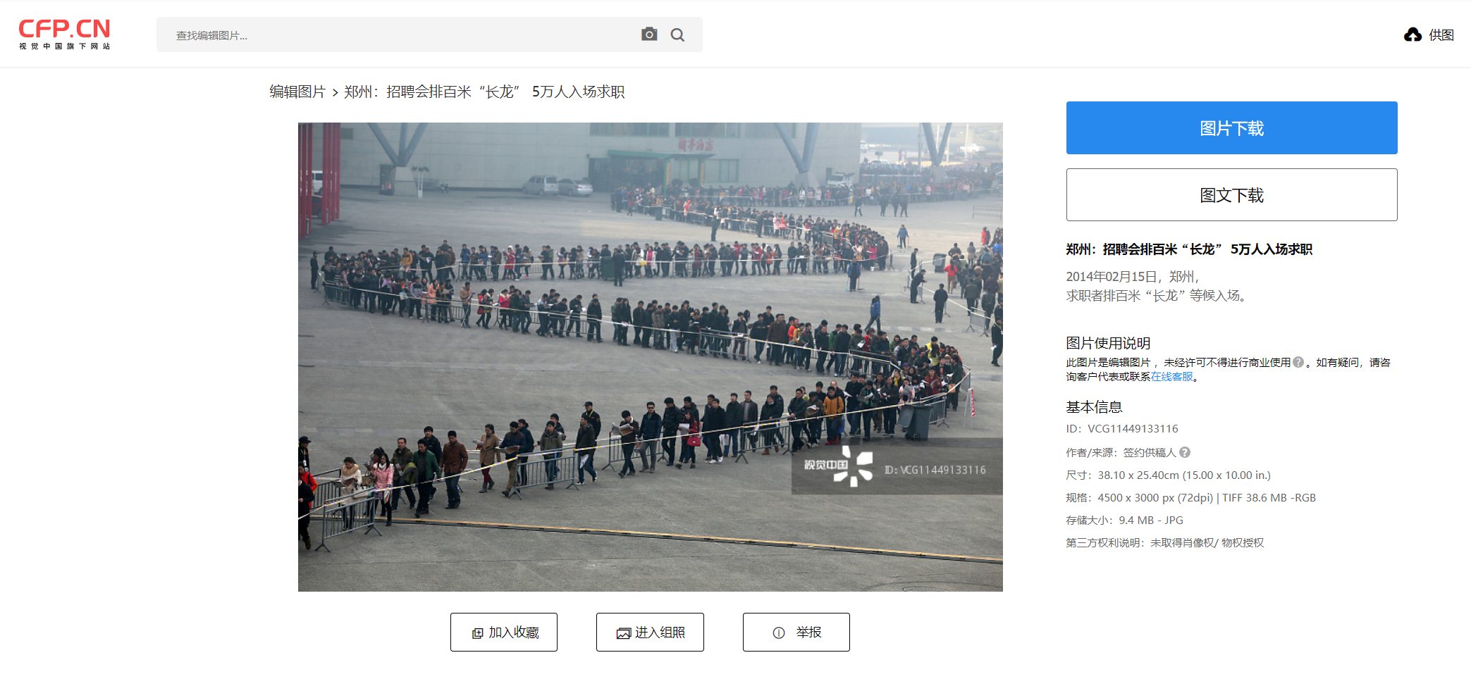 根据TinEye图片搜索发现,这张照片实际上拍摄于2014年2月15日,拍摄地点位于中国河南省郑州市国际会展中心。照片内容实际为河南省2014年春季大型综合人才招聘会开幕的场景。