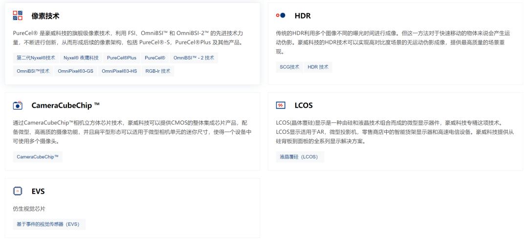 进行如此多领域的扩张,韦尔是否会浮躁是一个问题。但是,在看韦尔(豪威)的官网时,与绝大多数公司热爱明面吹嘘不同,韦尔在最主要的应用与产品界面,如下图所截,全部只展示清晰的产品框图和枯燥的数据资料,不附加任何的名词美化,实属宣传界清流。这一方面体现了韦尔对自身过硬产品的自信,另一方面让人看到它是在勤勤恳恳地做实事的。