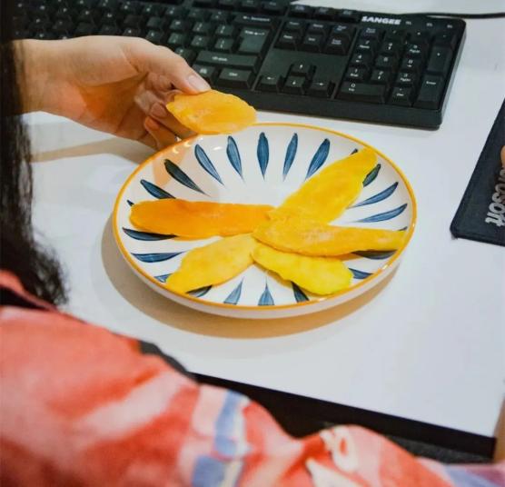 芒果的香甜味很浓,一片放在掌心占了大半手掌,吃得很开心。