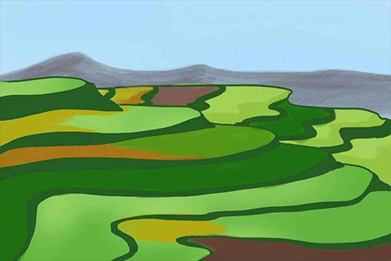 水稻生长需要大面积的水塘,更适合在水资源丰富的平原地区。但我国南方地区的一些省份地形多为丘陵、山地,为解决粮食问题,居住在此地的农民借助堤坝修筑了能够涵养水源、适宜水稻种植的梯田,使得丘陵地区也能够大面积种植水稻